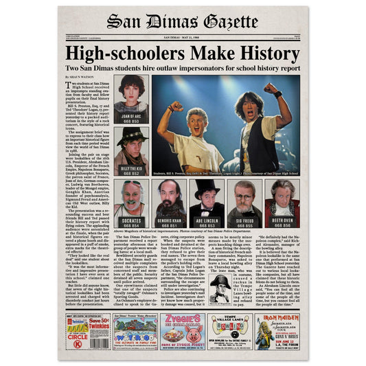 Bill & Ted's Excellent Adventure Newspaper poster print