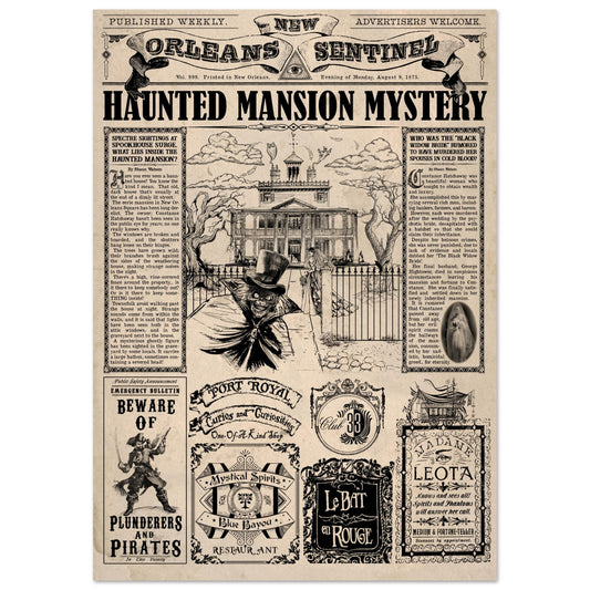 The Haunted Mansion Newspaper print Disneyland California New Orleans Square