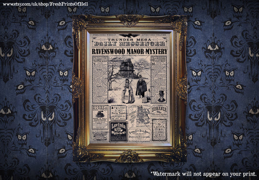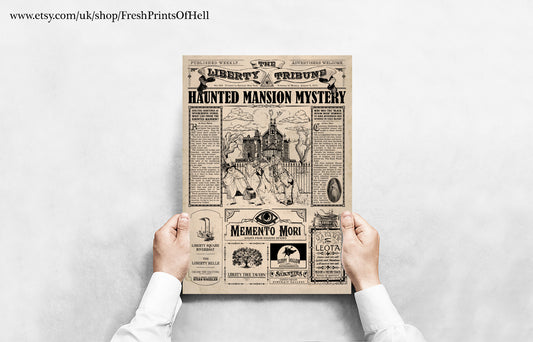 The Haunted Mansion Newspaper print Disneyworld Florida Magic Kingdom Liberty Square
