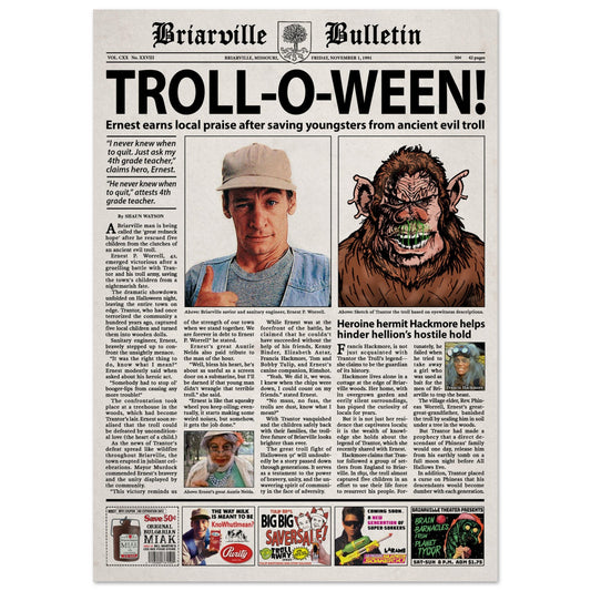 Ernest Scared Stupid Newspaper Poster print